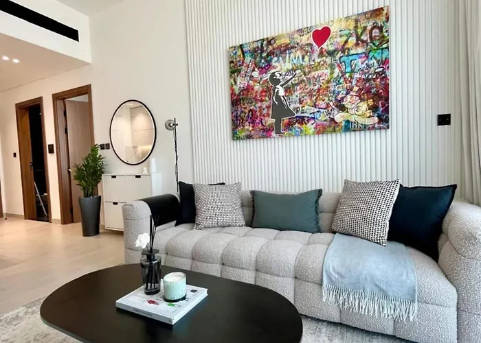 Appartement Modern & Smart 1Br W Stylish Interiors In Jvc à Dubaï est situé à environ 25 à pied de Complexe sportif Dubai Sports City et à environ 4 km du Parc Al Barsha Pond Park. Le domicile de 65 m^2 propose des équipements modernes, tels qu'un Wi-Fi et des éléments essentiels comme un parking privé gratuit pour les voyageurs en voiture.